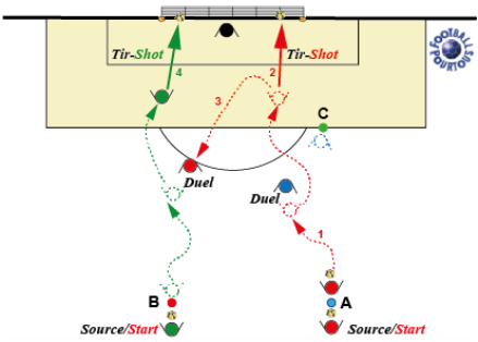 de balle et vient provoquer le défenseur C. Le joueur A élimine (ou pas) le joueur Cet