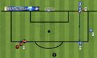Description : Placer 2 joueurs avec un ballon chacun au plot A (Source). Placer 1 joueur sans ballon au plot B. Placer 1 joueur sans ballon au plot C (les pourvoyeurs) et le reste des joueurs aux plots D (les tireurs). Le joueur A adresse une passe (passe 1) pour le joueur B, ce dernier remise en une touche de balle en profondeur pour le joueur B (passe 2) qui s'élance le long de la surface et centre (passe 3) pour le joueur D qui tire. Les 4 joueurs de couloirs sont les pourvoyeurs. Donner des consignes pour les tireurs, reprendre de volée, chercher le petit filet opposé, imposer la précision (cadrer les tirs).